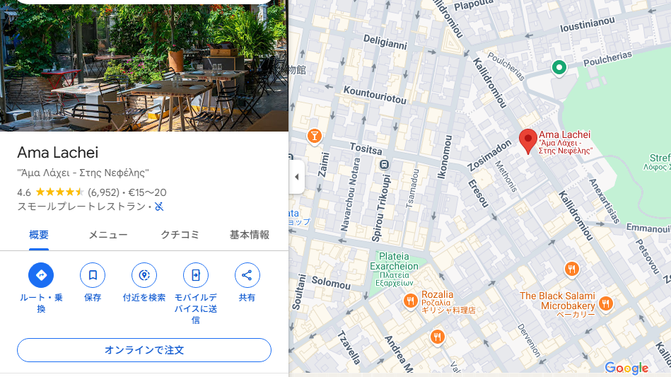 繁華街の中心地にあります。その夜は暑くて、とてもお腹がすいていました。でももうギュロスやそれに類するものを食べたくなかったのです。