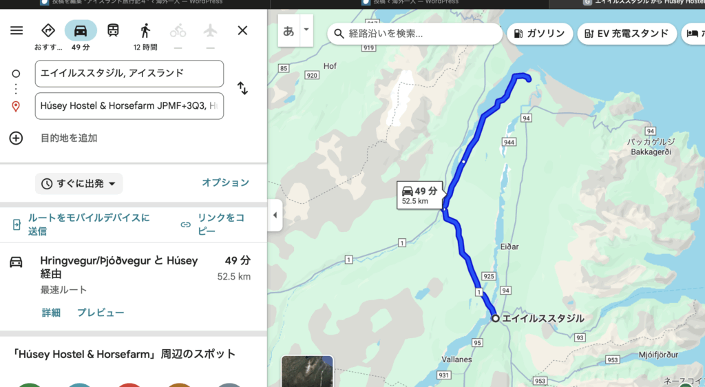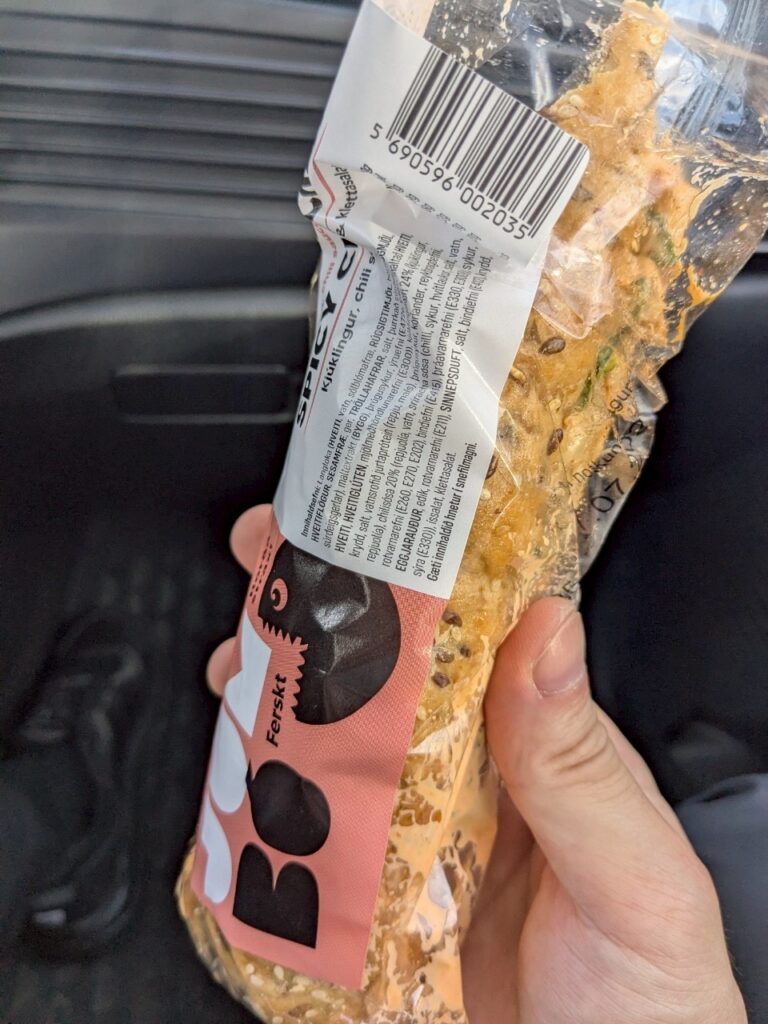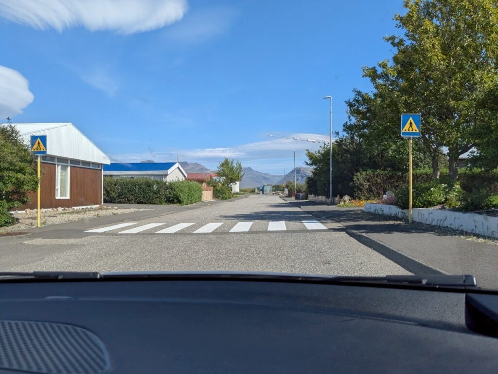 お腹が減って死にそうだったので、エイイルススタジルのスーパーでサンドイッチとアイスシューを買って車の中で食べました。この日は、めちゃめちゃ暑く半袖短パンでもきついぐらいでした。リカーショップもこの街にはあったので、全ての買い物を済ませてから宿に向かいました。
