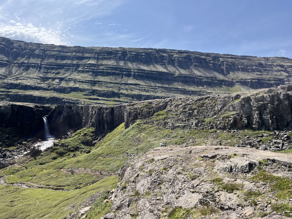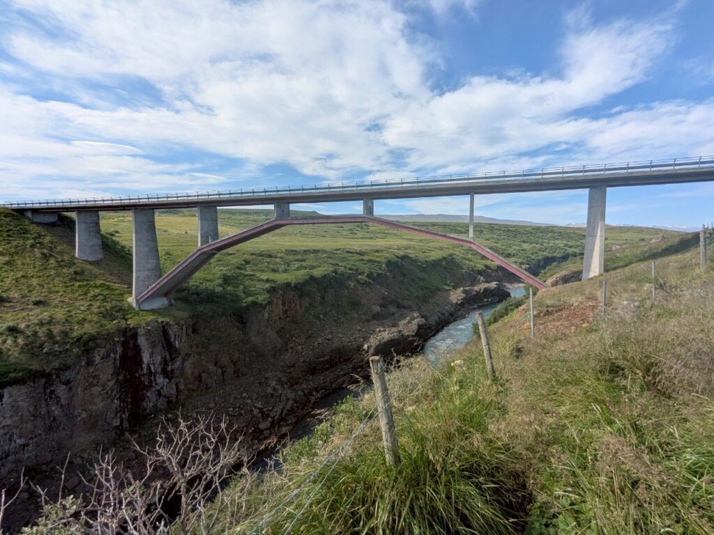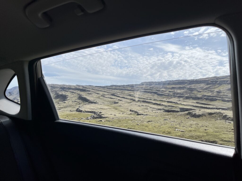 フィヨルド地帯を抜けてしばらく走ると、驚きの未舗装地帯がやってきます。その上勾配がかなり急で、落ちたら助からなそうな道を進んでいきます。しかも1号線みたいな名前の道路なので、アイスランドの主要幹線道かと思うのですが、まさかの未舗装です。笑