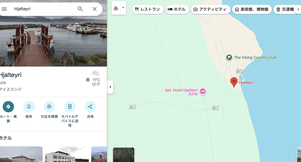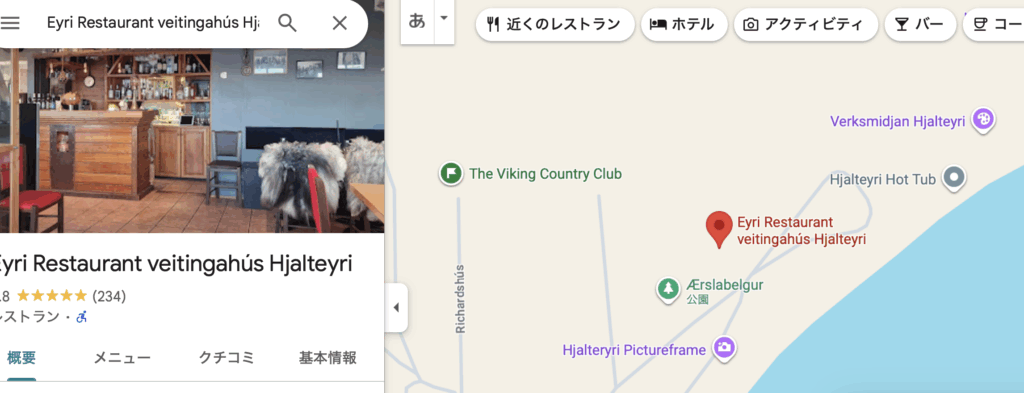 宿はまた紹介するとして、泊まったThe Viking Country ClubはHjalteyriというめちゃくちゃ小さな港町に位置しており、アークレイリから車で20分というところです。