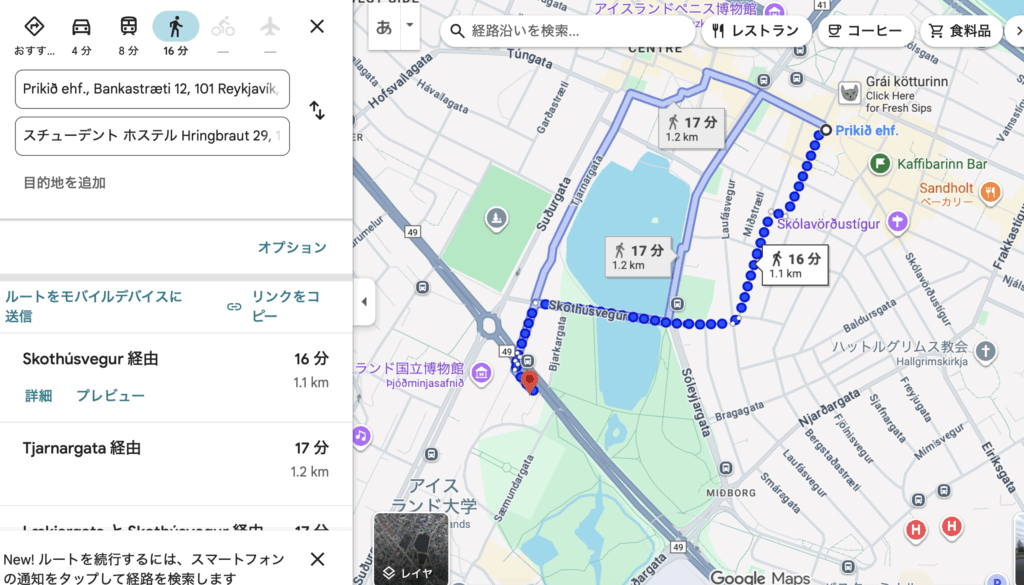 街中にはありますが、中心街までは歩いて、15分ほどでした。ちょっと遠いかもしれませんが、実際アイスランド街中に用があることなんてそうそうありません。お土産は買いに行きますが、そんなに近い必要もないわけで。この距離は全く気になりませんでした。