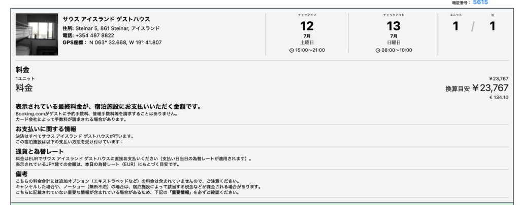 宿は、一部屋二人でこの値段です。一人1万ちょっとという所です。そうなんです、ゲストハウスでもこの価格帯なんです。