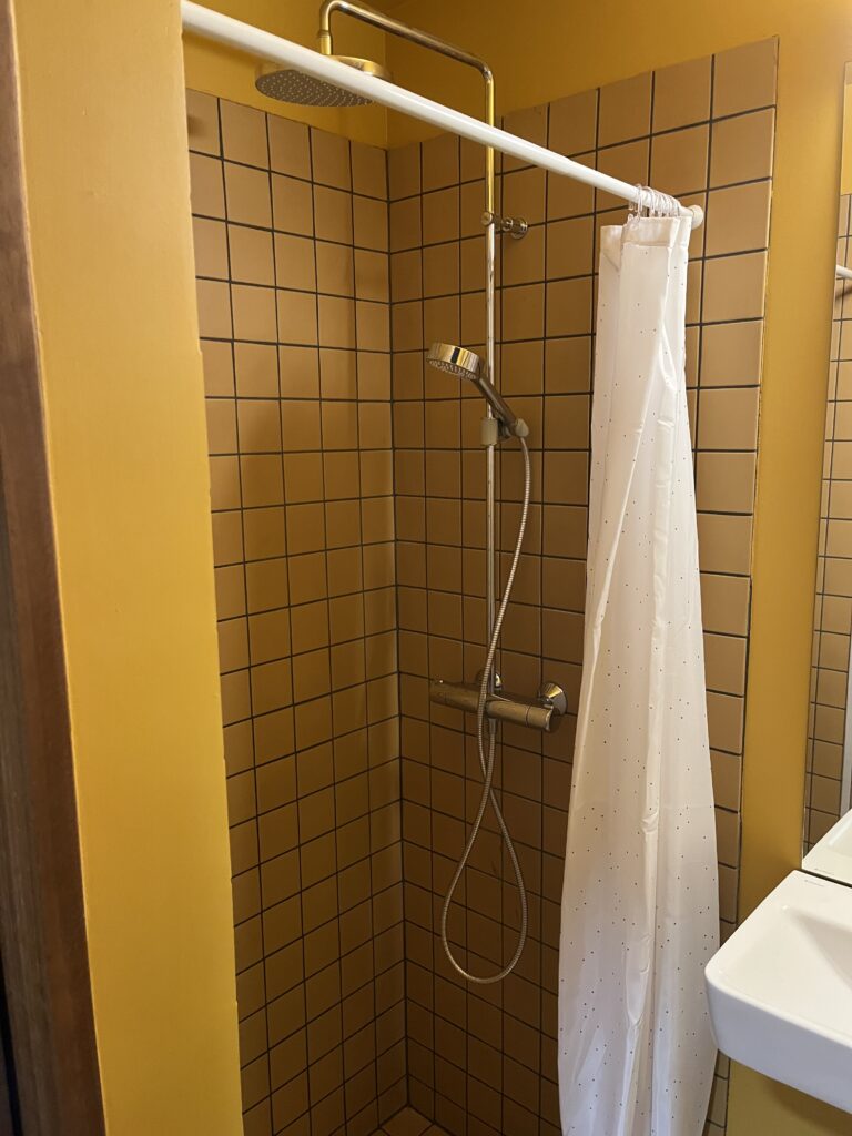 部屋ごとにシャワールームがあるなんて!シャワーは、部屋以外に自由に使えるところもありました。