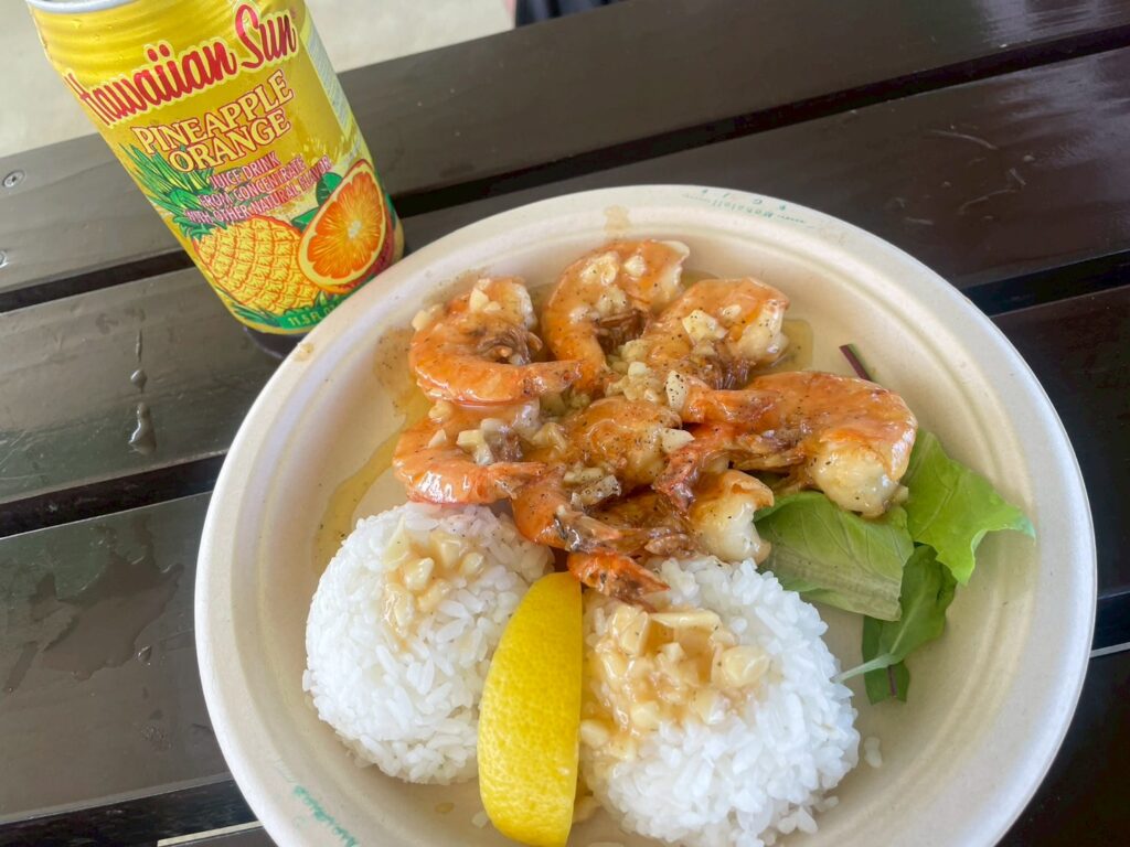 宮古島の北側に位置するガーリックシュリンプを食べることができるレストランです。レストランといっても完全に外って感じで、屋外食堂見たいな雰囲気です。