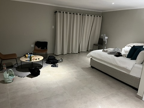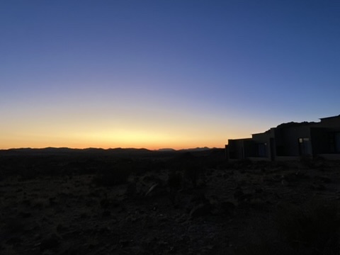 これはナミビアの砂漠にあるホテルでの夜です。↓