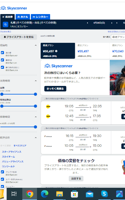 今回はスクートが一番安かったですね。出発時刻の指定や最短フライト・最安フライトなど様々な種類で検索をかける事ができ、検索の機能が圧倒的に素晴らしいです。なによりも安いです。
