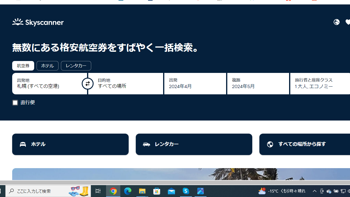 フライトの予約はスカイスキャナー