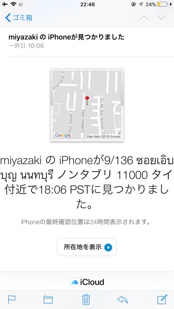 帰国後1週間してから、iPhoneが見つかりましたとの通知が届きました!