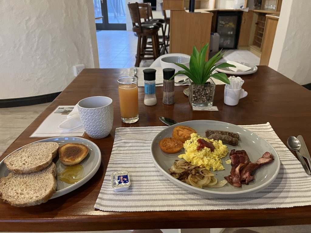 ウォルビスベイの宿で朝ご飯を食べます。