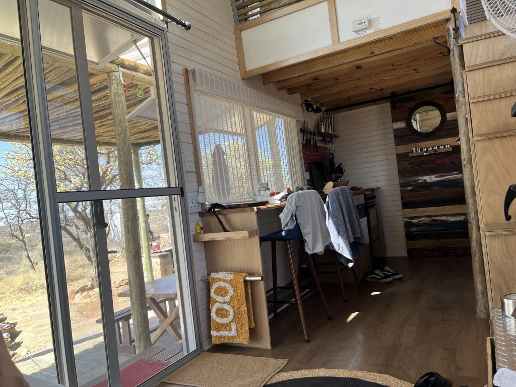 窓からはナミビアの荒野が見えます。ワイファイも完備されています。