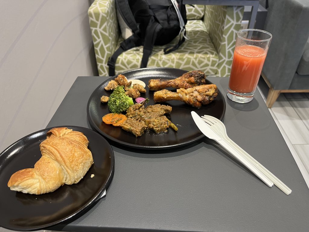 空港ではいつも使っているプライオリティパスでラウンジを楽しみました。