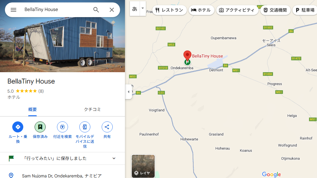 前回はウォルビスベイのディナーにて、カニ爪のフライを謳ったカニカマフライが出てきたところで終わりました。今回はウォルビスベイを出て、砂漠にある最高の宿に泊まった話です。