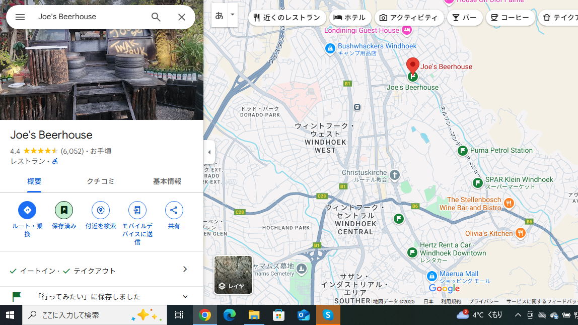 ウィントフックではとても有名なステーキ店に行きました。ジョーズビアハウスってとこです。なんかのブログで見たと思います。